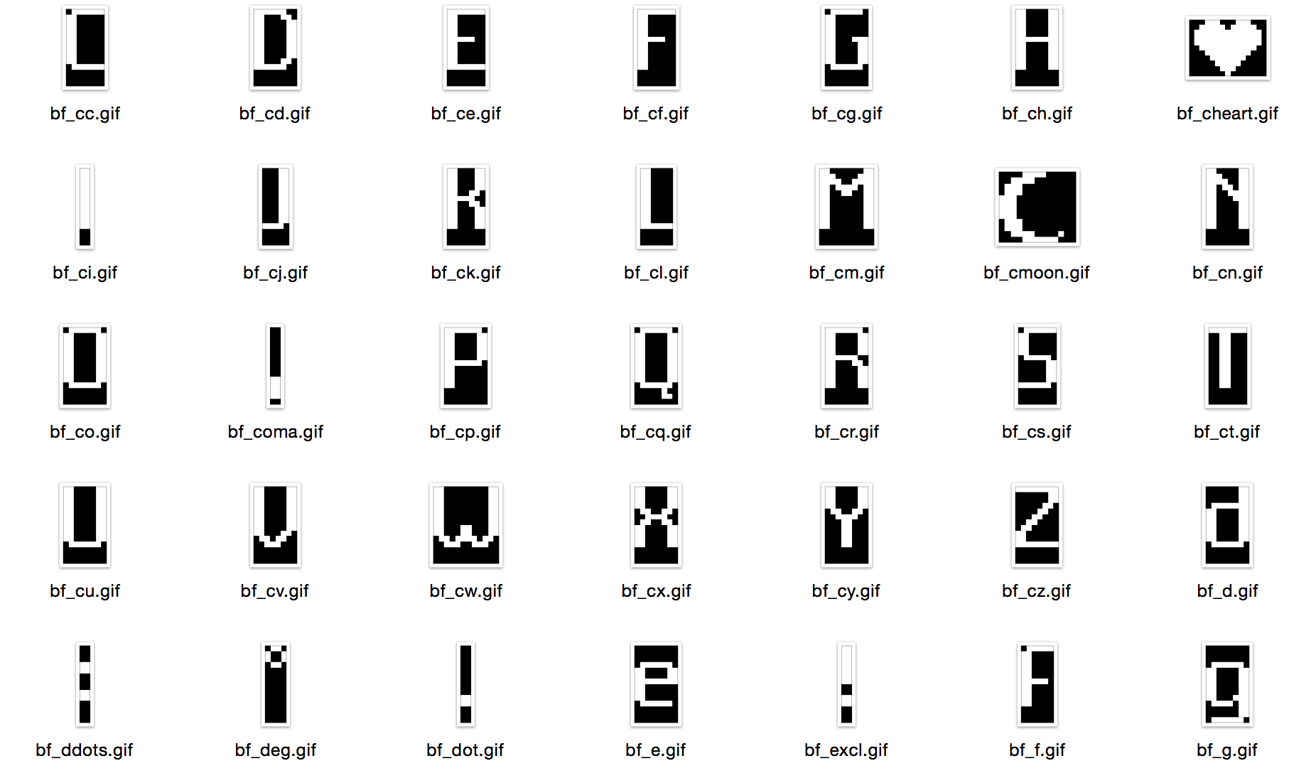 Items were then named and delivered to the Embedded Software Team as GIF files, then translated into bytes arrays they could use: