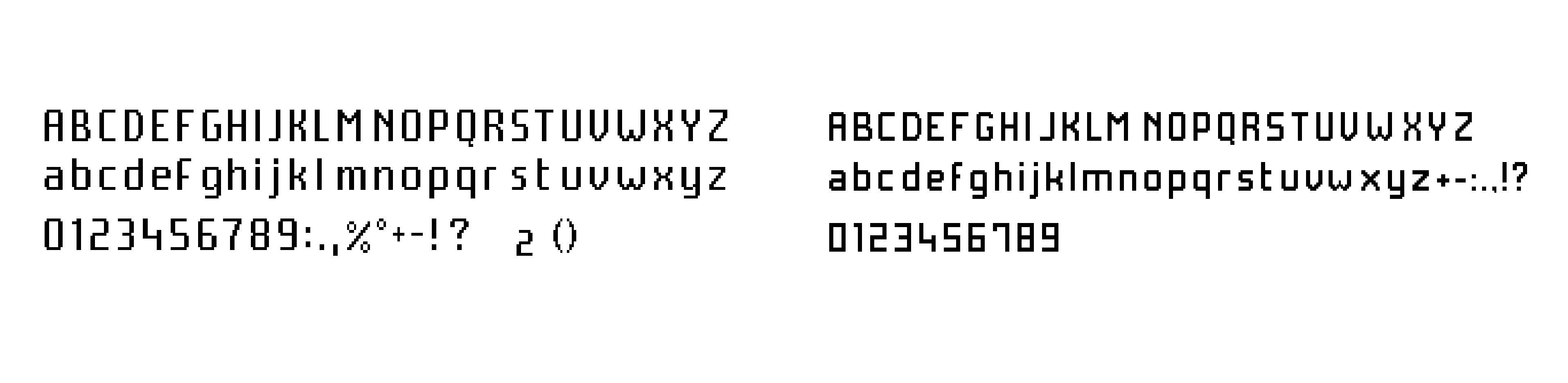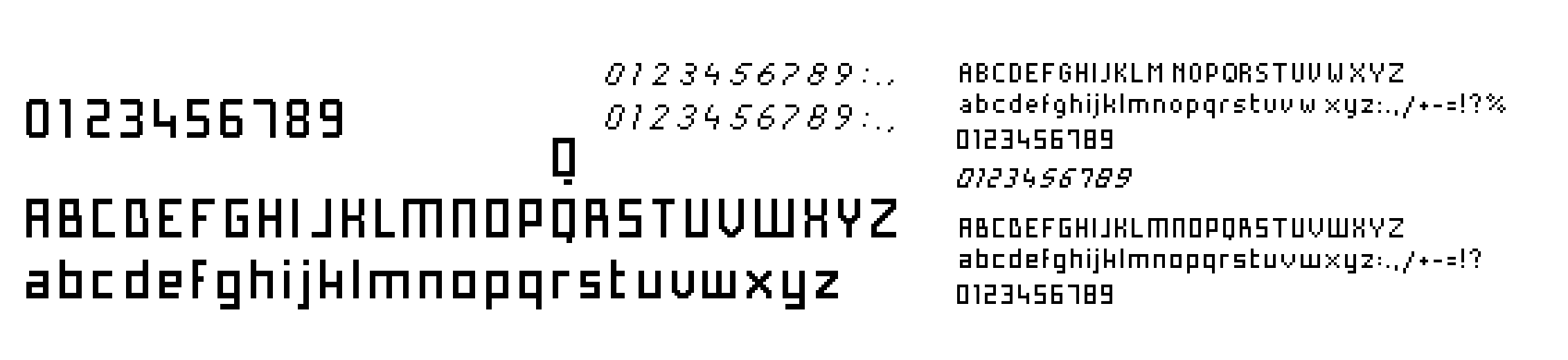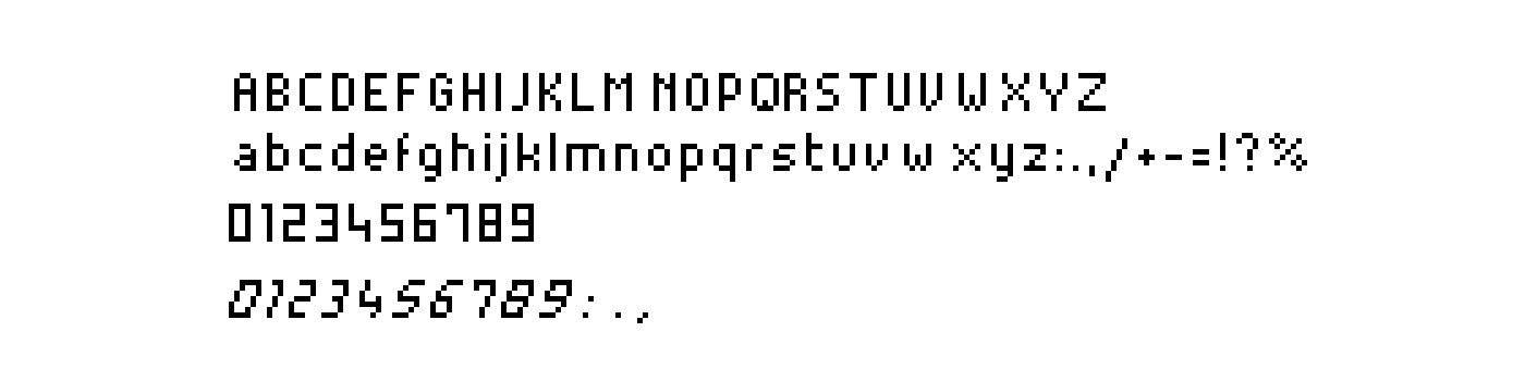 On this snapshot of the final product, you can see all three types; 10:47 is written with the main digit font, AM is using the main alpha numerical font, SCOTT is written with the smaller font: